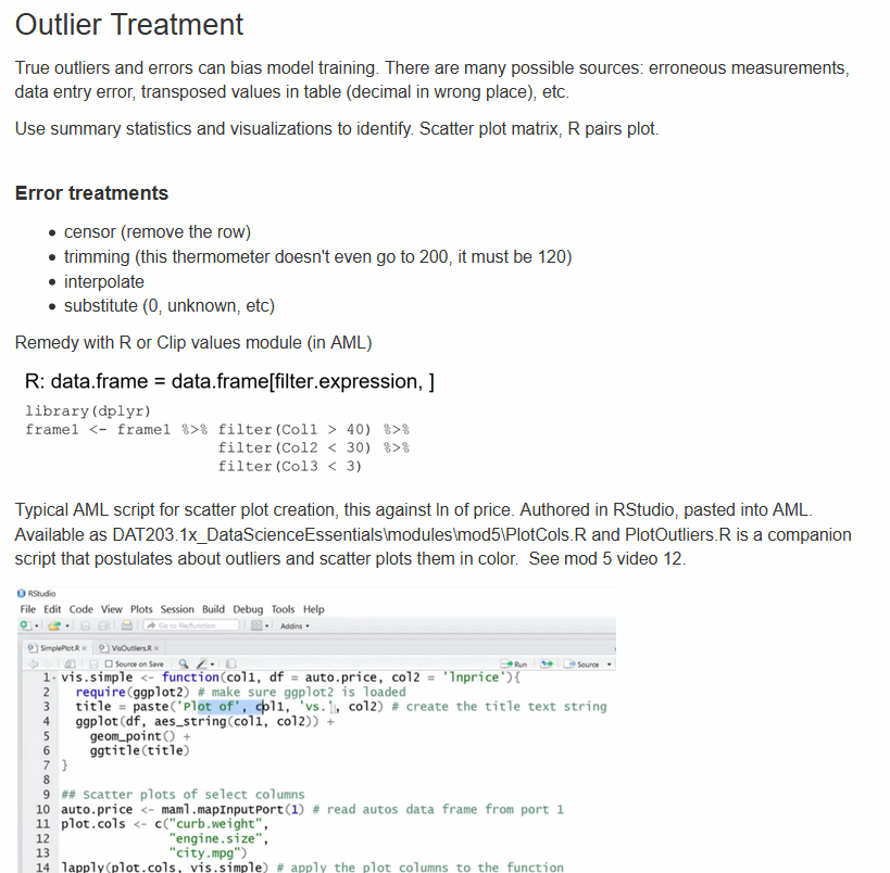 Steve does more of the applied instruction, including worked examples in the Azure Machine Learning (ML) environment. I’ll confess to having my doubts with his first couple of videos. There is a sense of “mad-scientist” in his mannerisms, but after you work past that you’ll realize he has a tremendous amount of insight to share. Among other things, he does a great job of orienting students to the Azure ML tool.